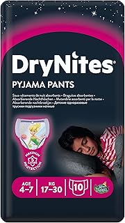 DryNites Huggies Couches de nuit absorbantes pour pipi au lit, pour filles de 4 à 7 ans (17 à 30 kg), 3 x 10 = 30 culottes, boîte mensuelle