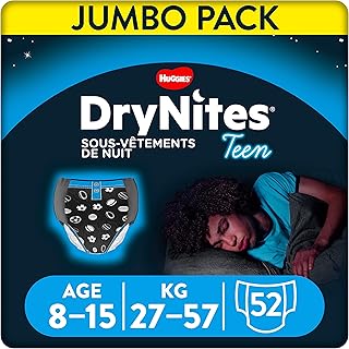 Huggies DryNites, Sous-vêtements de nuit absorbants jetables, Pour garçons, Taille : 8-15 ans, 52 culottes (4 x 13 unités)