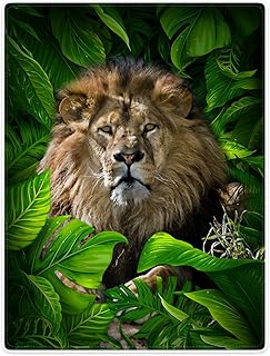 épaisse couverture douce chaleur gemütlich flanelle Canapé en polaire de couverture couvercle Cooler Lion feuillage vert plante tropicale Animaux, Flanelle, Grüne, 125 x 200cm
