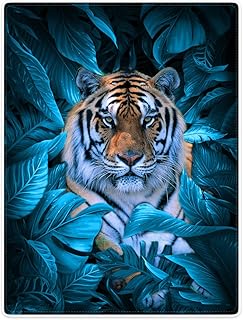 épaisse couverture douce chaleur gemütlich flanelle Canapé en polaire de couverture couvercle Plante tropicale Tiger Camouflage Camouflage, Flanelle, bleu, 125 x 200cm