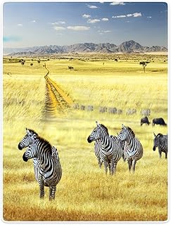 Violetpos Dick Couverture Chauffant souple confortable en flanelle polaire Canapé Couverture Couvercle Migration Animaux Africains de la Zebra en herbe, Flanelle, jaune, 125 x 150cm