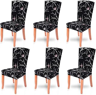 DoreenBow 1/6Pcs Housses de Chaise Universelle Extensible de Salle à Manger en Spandex Stretch avec Motif Imprimé pour Banquet Home Party Hôtel Cérémonie de Mariage