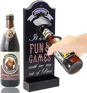 BelonLink Montage Mural Décapsuleur, Ouvre-Bouteilles en Bois, avec Cap Catcher, Style Vintage, pour la Maison, la Cuisine, le Jardin, la Terrasse, barre, la Caravane, l'intérieur et l'extérieur