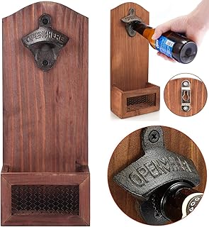 BAYINBROOK Ouvre-Bouteilles en Bois, avec Cap Catcher, Style Vintage,Montage Mural Décapsuleur pour la Maison l'intérieur et l'extérieur