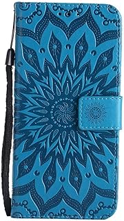 Sangrl Coque pour Huawei Y6 2018/Honor 7A/Enjoy 8E/Y6 Prime 2018/Honor 7A Pro, Premium Housse en PU Cuir [Fonction Support] [Titulaire de la Carte] Motif de Fleur de Soleil en Relief Flip Case Bleu