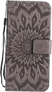 Sangrl Coque pour Huawei Y6 2018/Honor 7A/Enjoy 8E/Y6 Prime 2018/Honor 7A Pro, Premium Housse en PU Cuir [Fonction Support] [Titulaire de la Carte] Motif de Fleur de Soleil en Relief Flip Case Gris