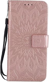 Sangrl Coque pour Huawei Y6 2018/Honor 7A/Enjoy 8E/Y6 Prime 2018/Honor 7A Pro, Premium Housse en PU Cuir [Fonction Support] [Titulaire de la Carte] Motif de Fleur de Soleil en Relief Flip Case Rose
