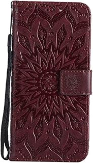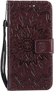 Sangrl Coque pour Huawei Y6 2018/Honor 7A/Enjoy 8E/Y6 Prime 2018/Honor 7A Pro, Premium Housse en PU Cuir [Fonction Support] [Titulaire de la Carte] Motif de Fleur de Soleil en Relief Flip Case Marron
