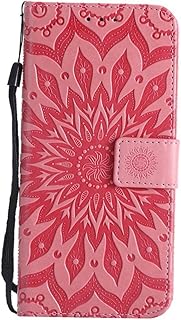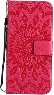Sangrl Coque pour Huawei Y6 2018/Honor 7A/Enjoy 8E/Y6 Prime 2018/Honor 7A Pro, Premium Housse en PU Cuir [Fonction Support] [Titulaire de la Carte] Motif de Fleur de Soleil en Relief Flip Case Rouge