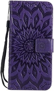 Sangrl Coque pour Huawei Y6 2018/Honor 7A/Enjoy 8E/Y6 Prime 2018/Honor 7A Pro, Premium Housse en PU Cuir [Fonction Support] [Titulaire de la Carte] Motif de Fleur de Soleil en Relief Flip Case Violet
