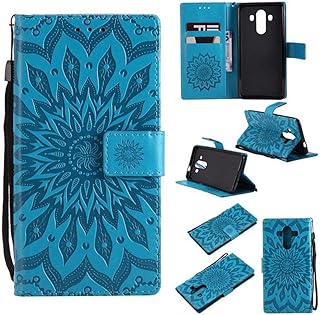 Sangrl Coque pour Huawei Mate 10 Pro, Premium Housse en PU Cuir [Fonction Support] [Titulaire de la Carte] Motif de Fleur de Soleil en Relief Flip Case Bleu