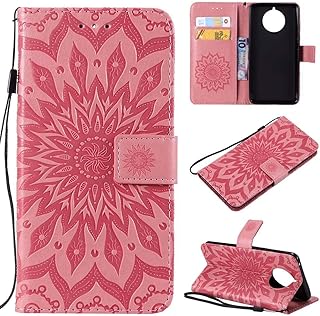 Sangrl Coque pour Nokia 9 PureView, Premium Housse en PU Cuir [Fonction Support] [Titulaire de la Carte] Motif de Fleur de Soleil en Relief Flip Case Rose