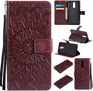 Sangrl Coque pour Huawei Mate 10 Lite/Nova 2i/Maimang 6, Premium Housse en PU Cuir [Fonction Support] [Titulaire de la Carte] Motif de Fleur de Soleil en Relief Flip Case Marron
