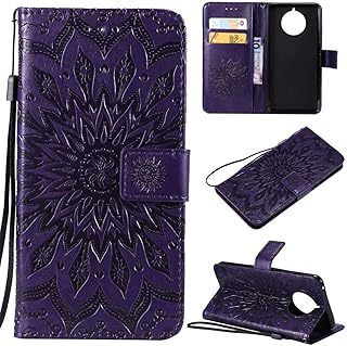Sangrl Coque pour Nokia 9 PureView, Premium Housse en PU Cuir [Fonction Support] [Titulaire de la Carte] Motif de Fleur de Soleil en Relief Flip Case Violet