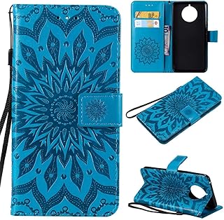 Sangrl Coque pour Nokia 9 PureView, Premium Housse en PU Cuir [Fonction Support] [Titulaire de la Carte] Motif de Fleur de Soleil en Relief Flip Case Bleu