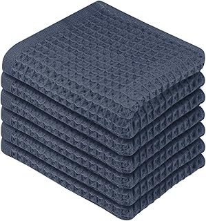 Lirex Set de Torchons de Cuisine (Paquet de 6), Serviettes de Cuisine Doux à Séchage Rapide Absorbant Gaufre Torchon de Vaisselle en 100% Coton, Lavables en Machine (Gris)