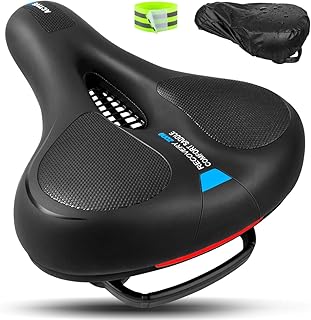OhMyGoods ⭐ Selle de Vélo Confortable et Ergonomique Hommes Femmes, Selle Velo Large Ultra Confort avec Bande Réfléchissante, Siège de Vélo pour Bicyclette/VTT/Vélo de Route/Randonnée