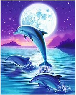 Plein Foret 5d Diamant Peinture Kits Kit Point De Croix Artisanat Nouveau DIY Kits Cadeaux De Noël pour Enfants Adultes Peindre par numéro Kits (Dauphin, 30x40cm, Round Drill)