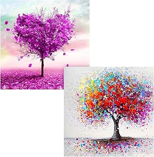 5D Diamant Peinture, 2 Pcs DIY Plein Foret Diamant Peinture Kits Diamant Art Kits Plein Ronde Perceuse Kits Plein Foret Point De Croix Kit Strass Broderie Coloré Arbre Décoration Murale 11.8 * 11.8in